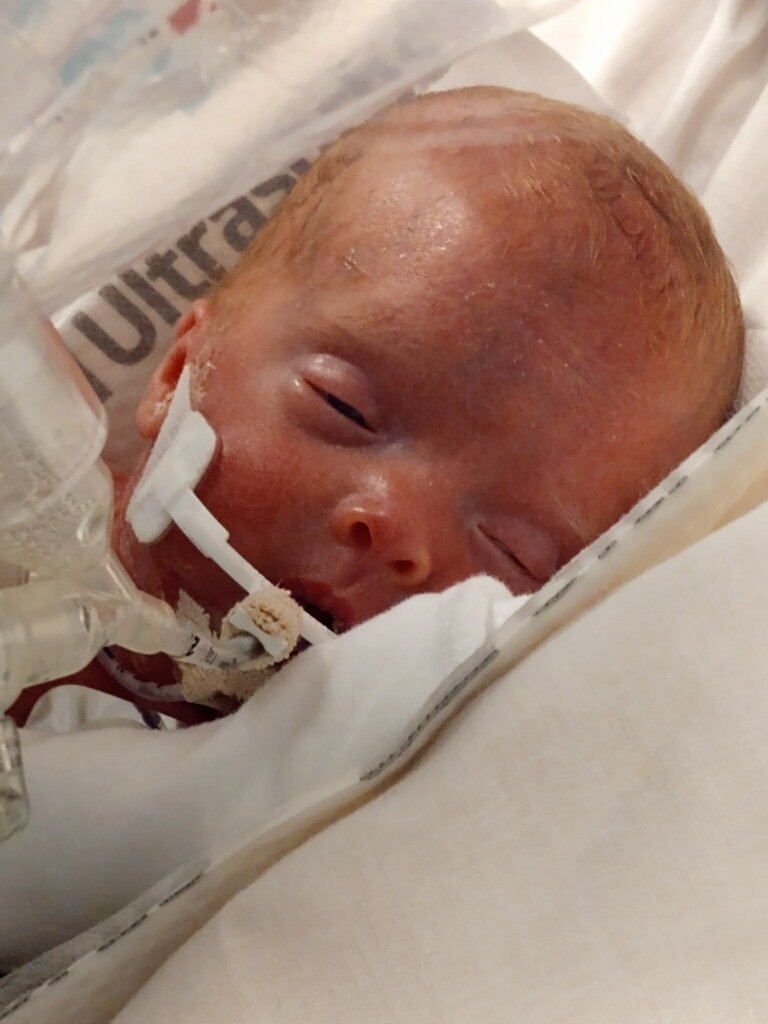 I was born one month ago today. In one month, I have nearly tripled my weight. Most of you will never want to do that. I am no longer a “micro-premie.” As a 3 pounder, I am now a “very” preemie. In gestational time, I am 30 weeks old. I still spend all of my time having “treatments”, being observed, breathing through a ventilator, receiving blood transfusions and yet, through all of this, I still look amazing. A girl always has to look her best for the occasional photo-op. As you can tell, I have plumped up a bit, and my natural strawberry blonde hair looks splendid. I still don’t appreciate bright lights, but Grandma insists I be photoed every few days. Today was especially sweet because I was allowed 2 ml of Mama’s special milk. Thank-you Mama for all of your time making it. It always leaves me content and sated. “If time is the measurement of my existence, then I have been weighed and I have been measured and I want for nothing.”
