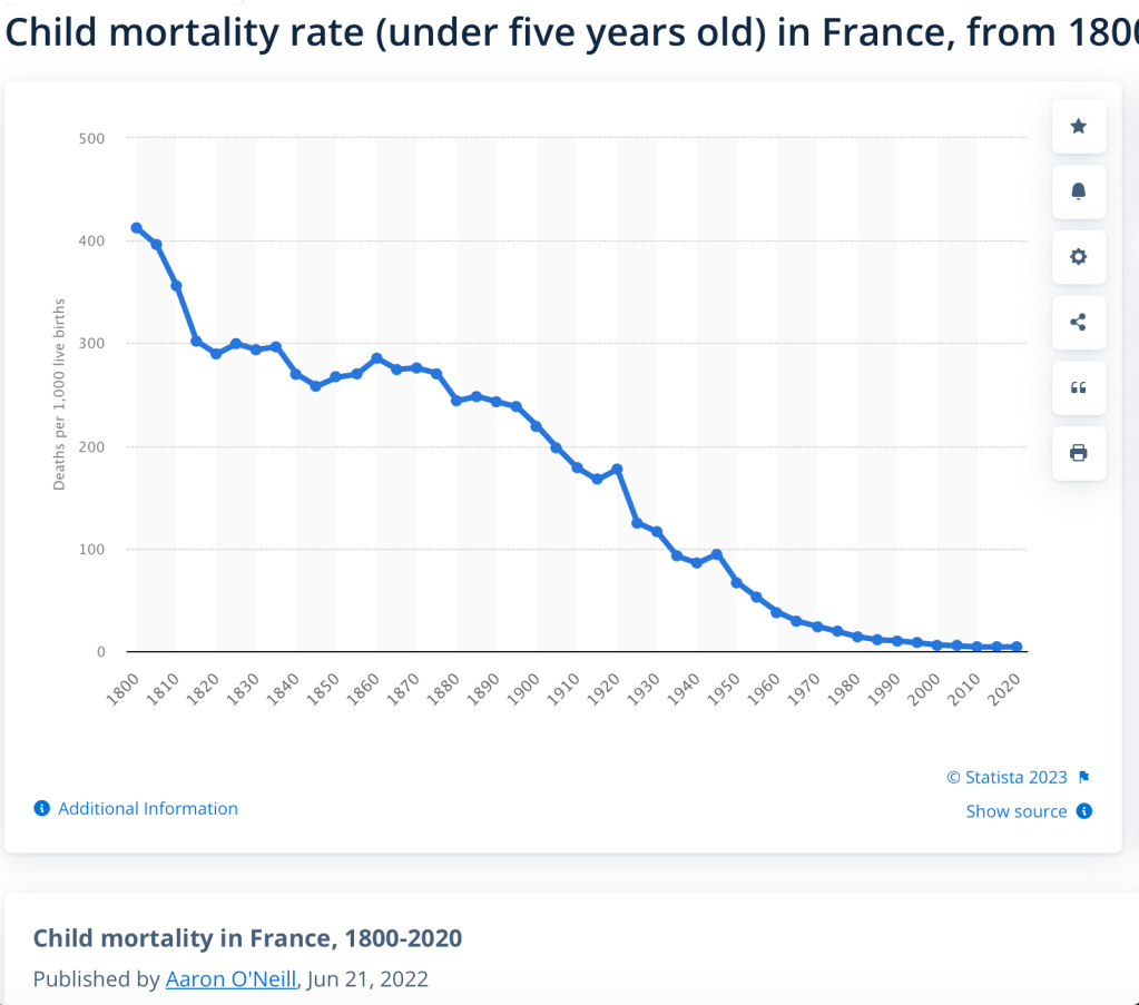 Not only was disease rampant, but the practice of poor hygiene, open sewage mixed with drinking water (Typhus), communal cups and pails and the French practice of letting out infants to “wet nurses” (because mothers had to work in the factories and on farms in this region.) This led to widespread neglect and insufficient nutrition.